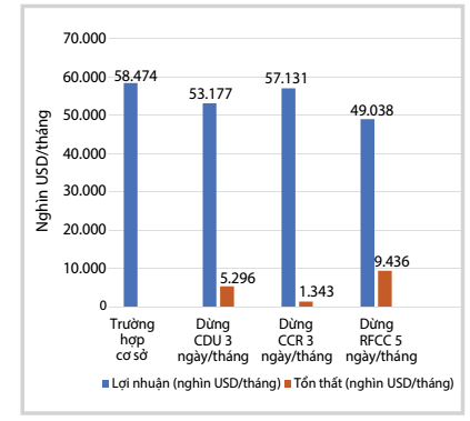 Shutdown of a unit in the event of an accident is a common occurrence in the operation of any refinery in the world and normally causes a certain amount of damage or loss in margin aspects (depending on technology configuration, shutdown unit, downtime and decisions made during the incident). Calculation of margin loss and seeking the optimal solution to minimise its influences are, therefore, very important. This paper presents the method of productivity loss calculation and proposes the optimal operation plans in some shutdown scenarios for a typical refinery based on the application of Linear Programming Technique (LP) developed by Petrovietnam Research and Development Centre for Petroleum Processing (PVPro) - Vietnam Petroleum Institute (VPI).