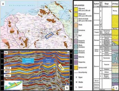 Natural fractures associated with karst systems certainly exist in a tight Devonian carbonate reservoir of the study field with primary porosity and permeability typically less than 3% and 1mD, respectively. Up to now, several workflows have been implemented to model natural fractures and karst networks; unfortunately, existing results cannot be used for managing the field in the future. This paper presents a new integrated approach to build the 3D geological model and simulation for Devonian carbonate reservoirs based on geology, geophysics and production data. With two kinds of reservoir porosity (primary and secondary porosity), the conventional stochastic pixel-based method is applied to populate the porosity and permeability distribution of matrix while the objective-based method is used to model vuggy affected cells along fractured zones which were defined from seismic curvature attributes. The properties of fracture corridors are predicted from the power law function of core, well and seismic data, which are consequently modelled by the Discrete Fracture Network (DFN) method and upscaled by ODA’s method. The approach reflects better in matching based on 5 years of production and pressure history. Finally, various development scenarios are investigated.