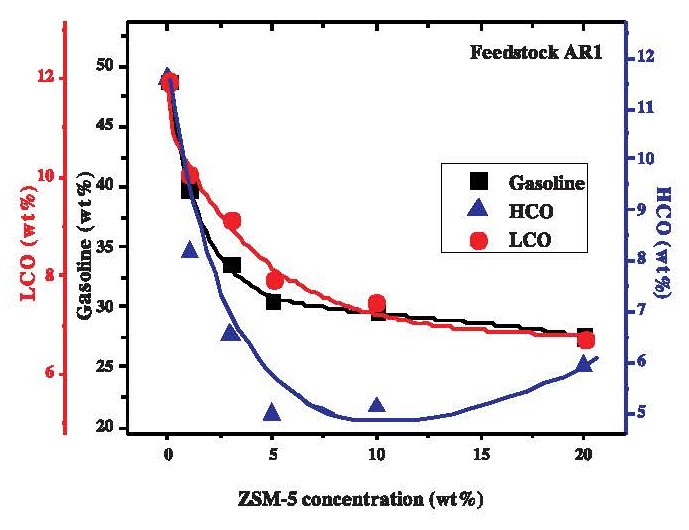 Effect of feedstock properties on the performance of ZSM-5 additive in catalytic cracking reaction